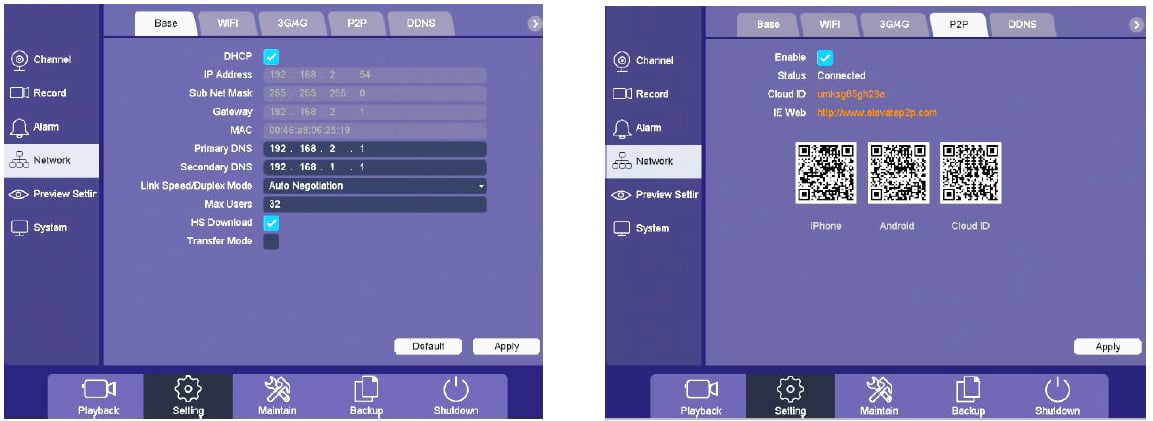 With P2P QR connection there is no need to set any ports, worry whether your uPnP is enabled within your router, do any port forwarding within your router or setup a DDNS name.
