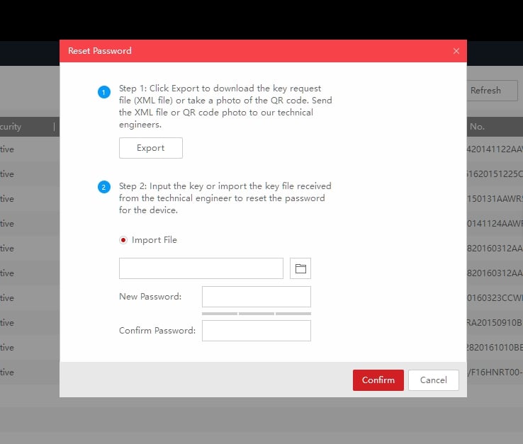 3. When you receive the new file from Technical Support, click the Browse tab to import file and enter a new password then press confirm.